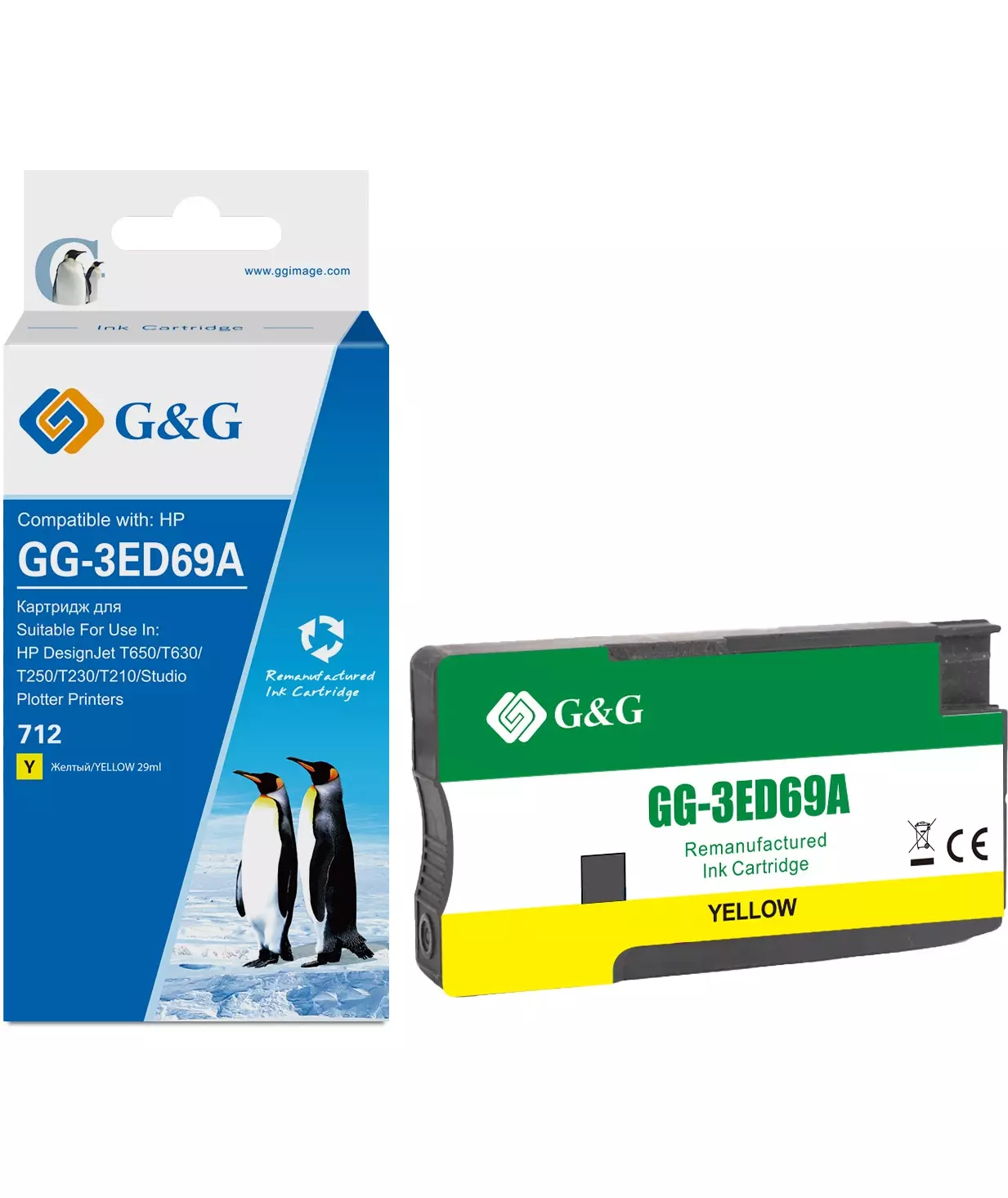 Картридж струйный G&G GG-3ED69A 712 желтый (29мл) для DesignJet T650/T630/T250/T230/T210/Studio Plotter Printers