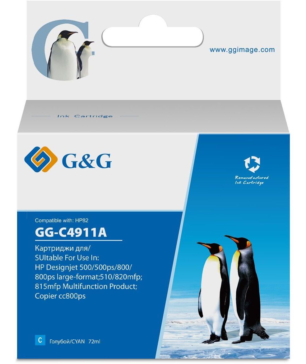 Картридж струйный G&G GG-C4911A номер 82 голубой (72 мл) для HP DJ 500/800C