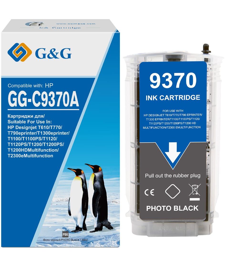 Картридж струйный G&G GG-C9370A фото черный (130 мл) для HP Designjet T610, T770, T790eprinter, T1300eprinter, T1100, T1100PS, T1120, T1120PS, T1200, T1200PS, T1200HDMultifunction, T2300eMultifunction