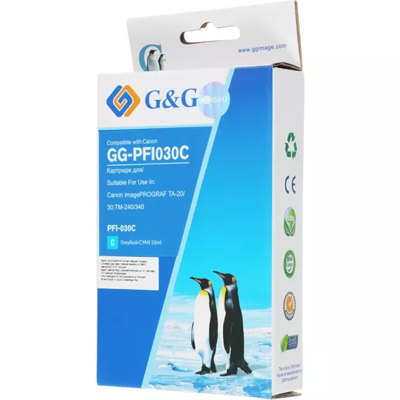 Картридж струйный G&G GG-PFI030C PFI-030C голубой (55мл) для Canon imagePrograf TA-20/30 TM-240/340