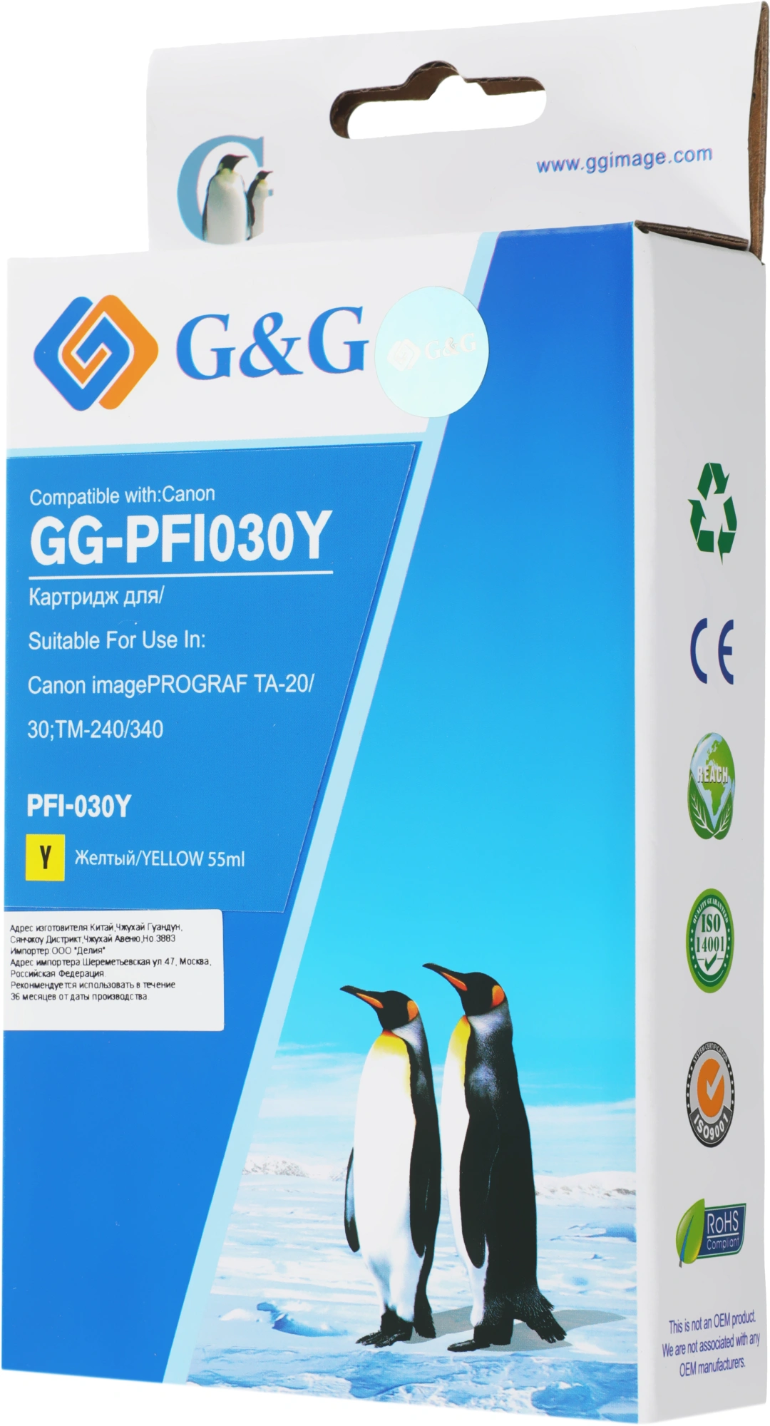 Картридж струйный G&G GG-PFI030Y PFI-030Y желтый (55мл) для Canon imagePROGRAF TA-20/30