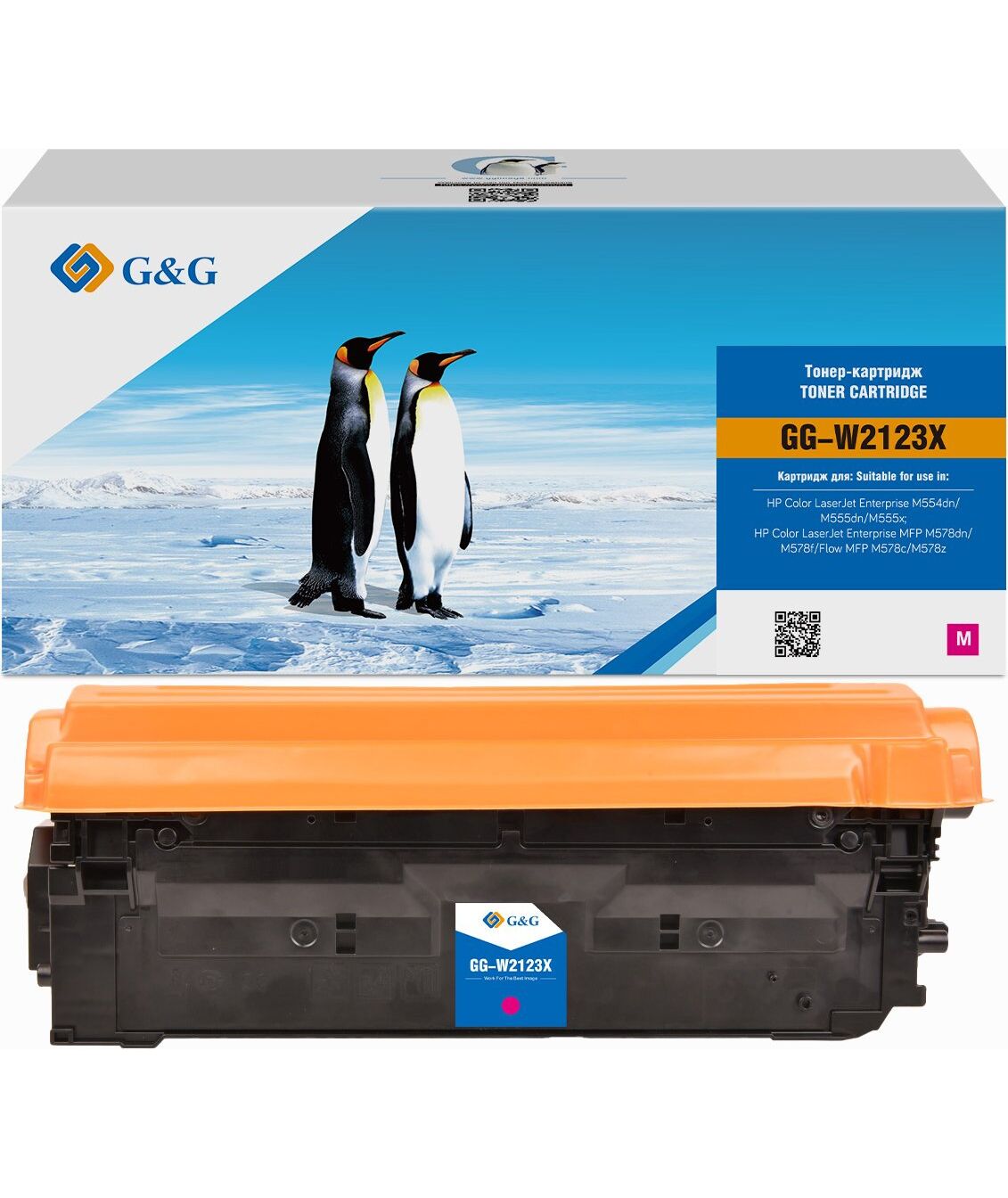 Тонер-картридж G&G GG-W2123X пурпурный для HP Color LJ Entprise M554/555, MFP M578 (10000 стр)