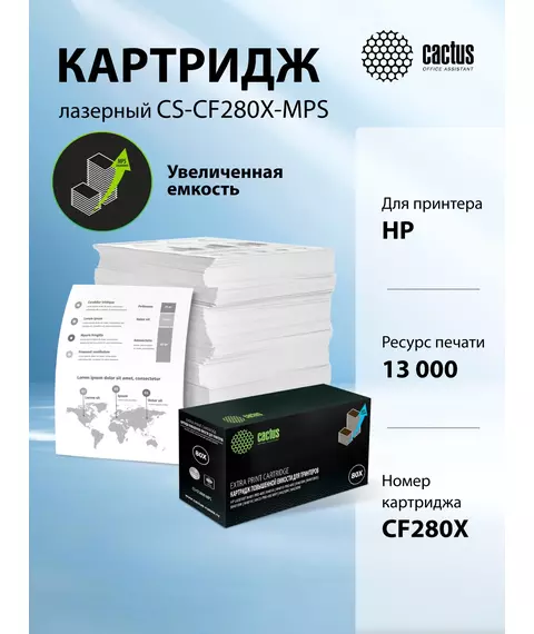 Картридж Cactus CS-CF280X-MPS черный (13000стр.) для HP LJ 400/M401/M425