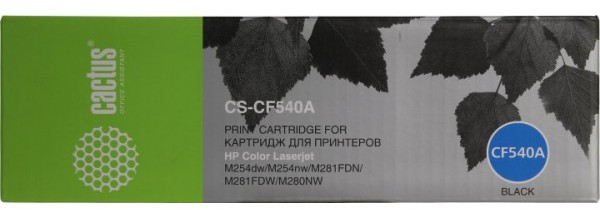 Описание Картридж Cactus CS-CF540A черный (1400стр.) для HP Color LJ Pro M254dw/M254nw/M281fdn /M281fdw/M280nw