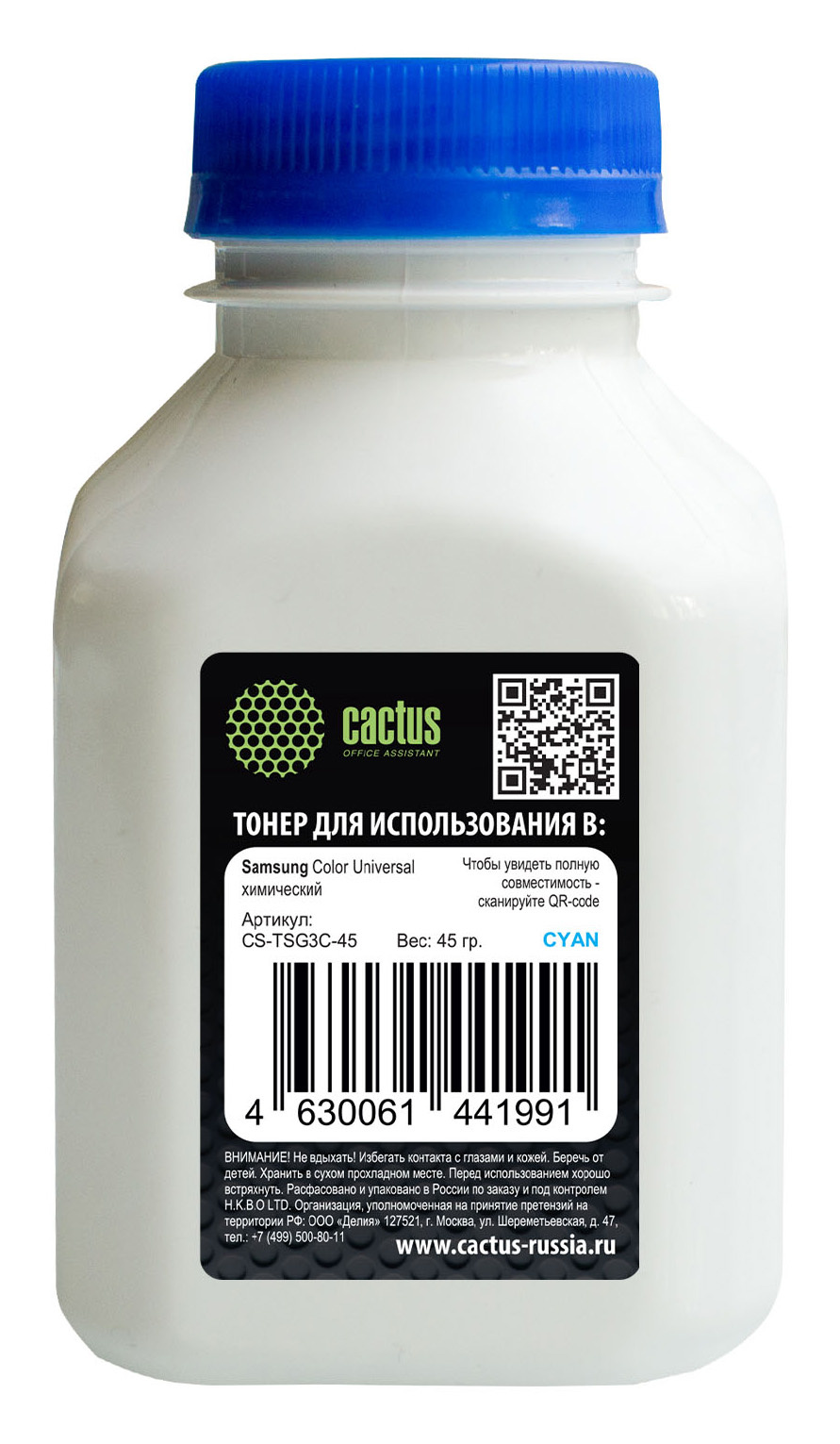Тонер Cactus CS-TSG3C-45 голубой флакон 45гр для принтера Samsung CLP Universal