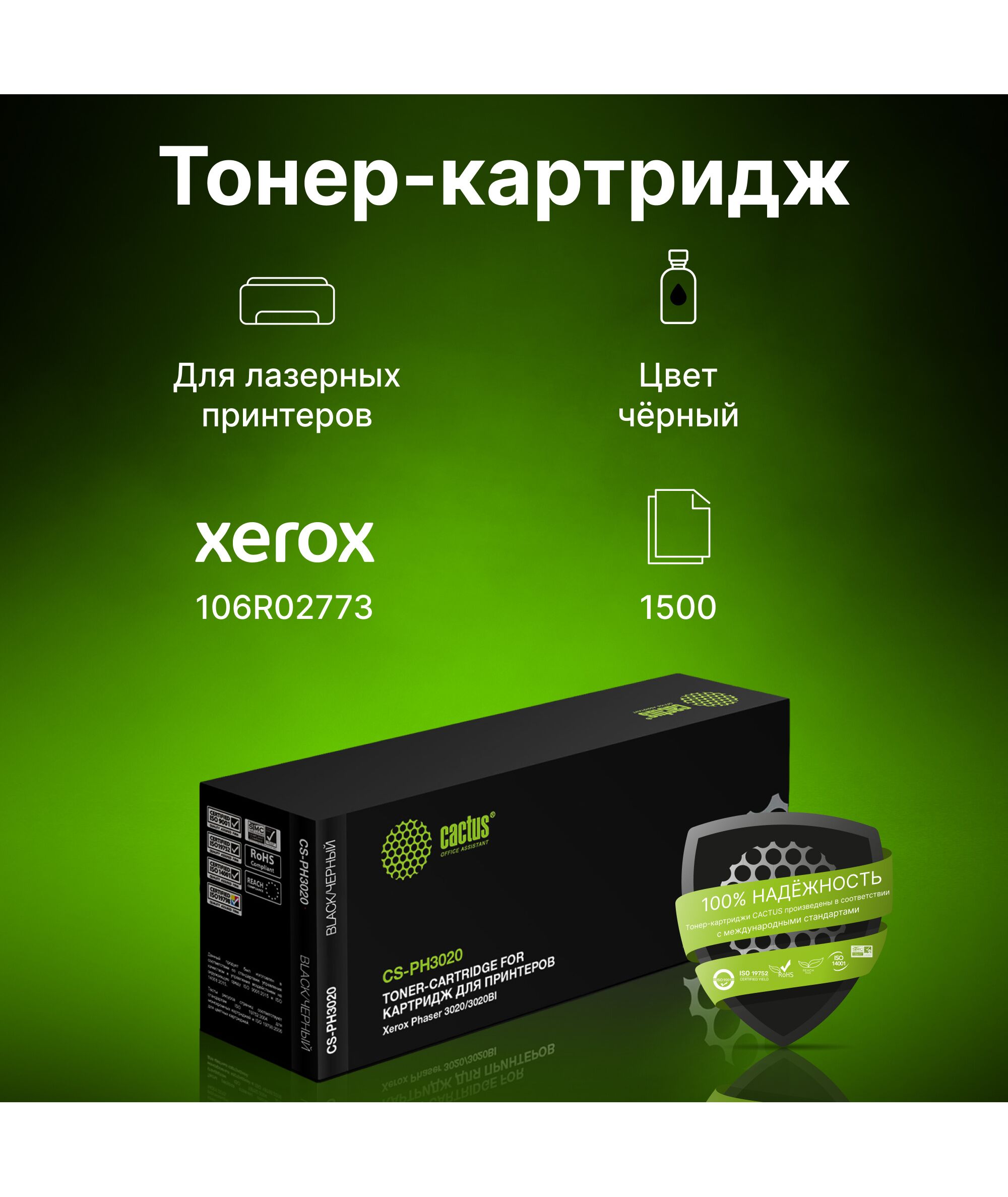 Картридж лазерный Cactus CS-PH3020 аналог 106R02773 черный (1500стр.) для Xerox Phaser 3020/3020BI