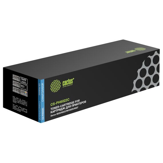 Картридж лазерный Cactus CS-PH6022C аналог 106R02760 голубой (1000стр.) для Xerox Phaser 6020/6022/WC6025/6027