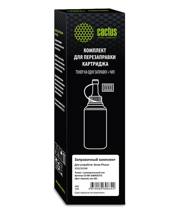Тонер Cactus CS-RK-106R02773 черный флакон 60гр., чип, для принтера Xerox Phaser 3020/3020BI