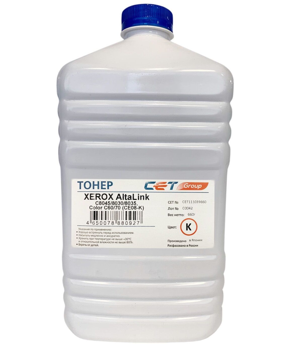 Тонер Cet CET111039660 CE08-K черный бутылка 660гр. для принтера XEROX AltaLink C8045/8030/8035, Color C60/70
