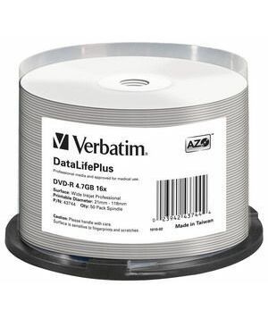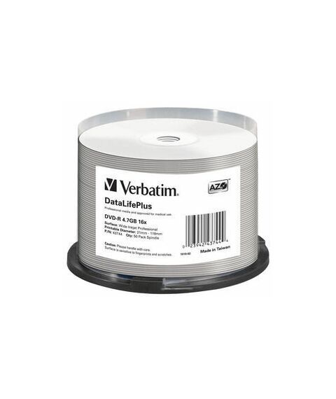 Диск Verbatim DVD-R 4.7Gb 16x Cake Box Printable 50шт [43744]
