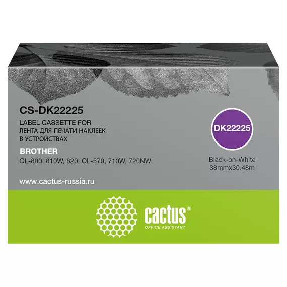 Картридж ленточный Cactus CS-DK22225 черный на белом 38x30.48 для QL-800, 810W, 820, QL-570, 710W, 720NW