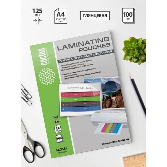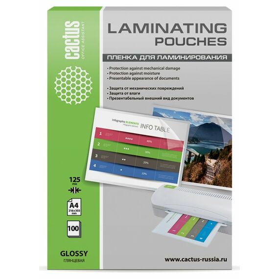 Пленка для ламинирования Cactus CS-LPGA4125100 125мкм A4 216x303мм глянцевая 100шт