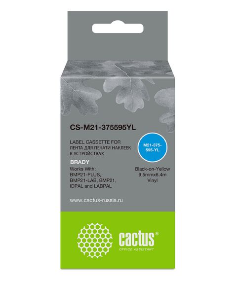 Картридж ленточный Cactus CS-M21-375595YL черный на желтом 9.5x6.4 для BMP21-PLUS, BMP21-LAB