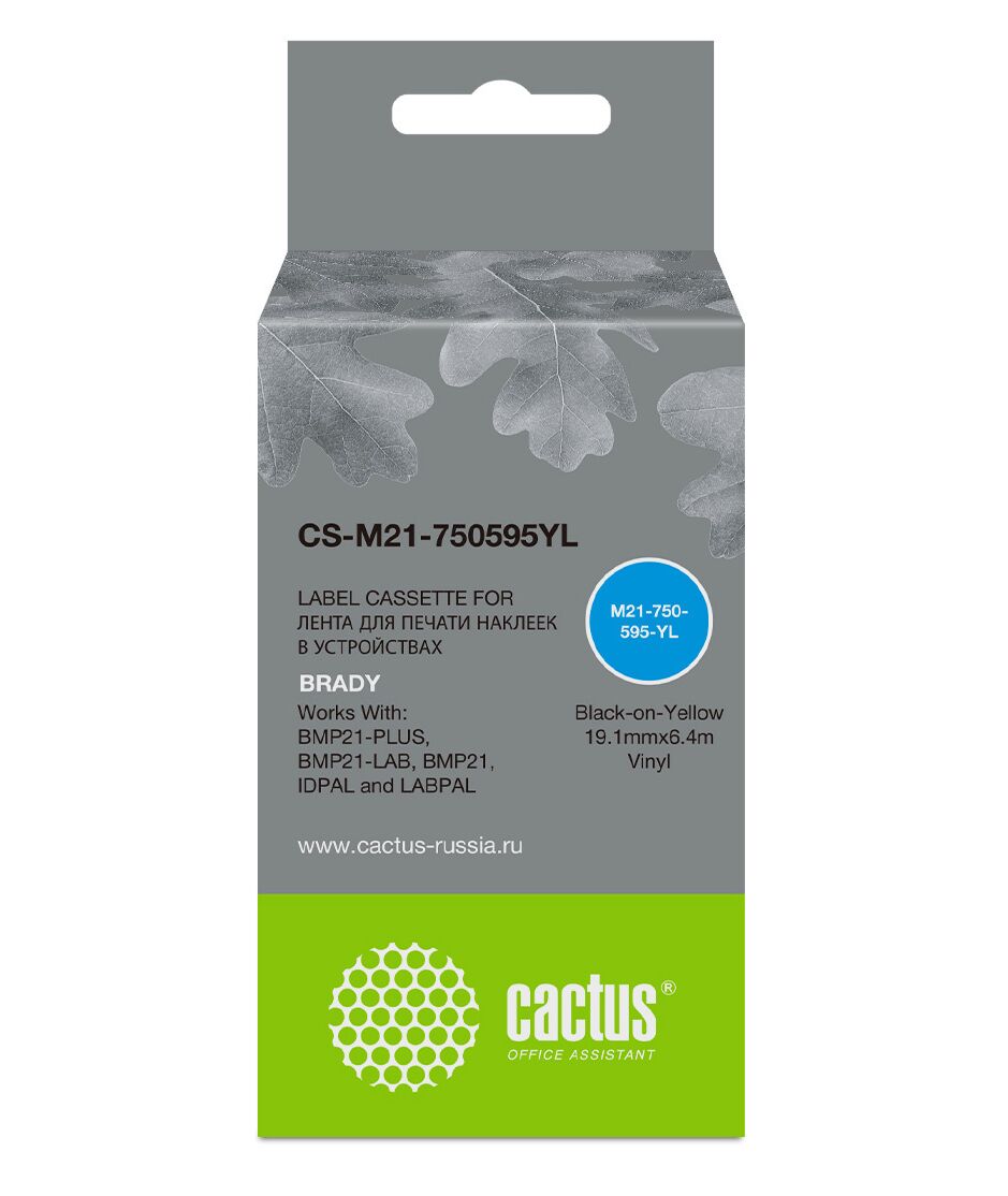 Картридж ленточный Cactus CS-M21-750595YL черный на желтом для Brady BMP21-PLUS, BMP21-LAB 19.1x6.4