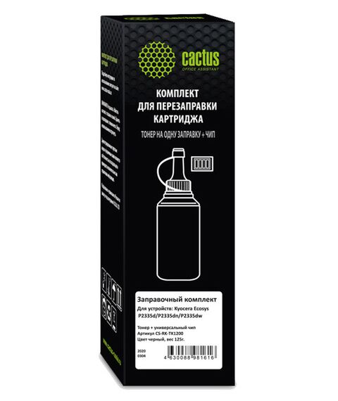 Тонер Cactus CS-RK-TK1200 черный флакон 125гр. в компл.:чип для принтера Kyocera Ecosys P2335d/P2335dn/P2335dw