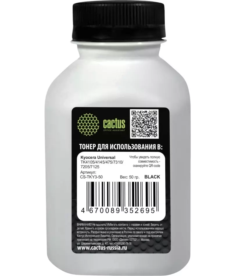 Тонер Cactus CS-TKY3-50 черный флакон 50гр. для принтера Universal TK4105/4145/475/7310/7205/7125