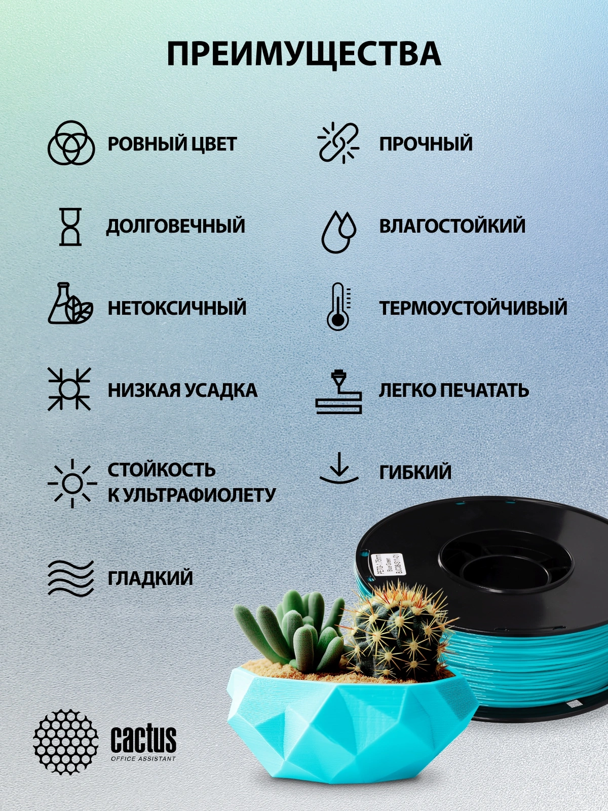 Описание Cactus CS-3D-PETG-1KG-CYAN