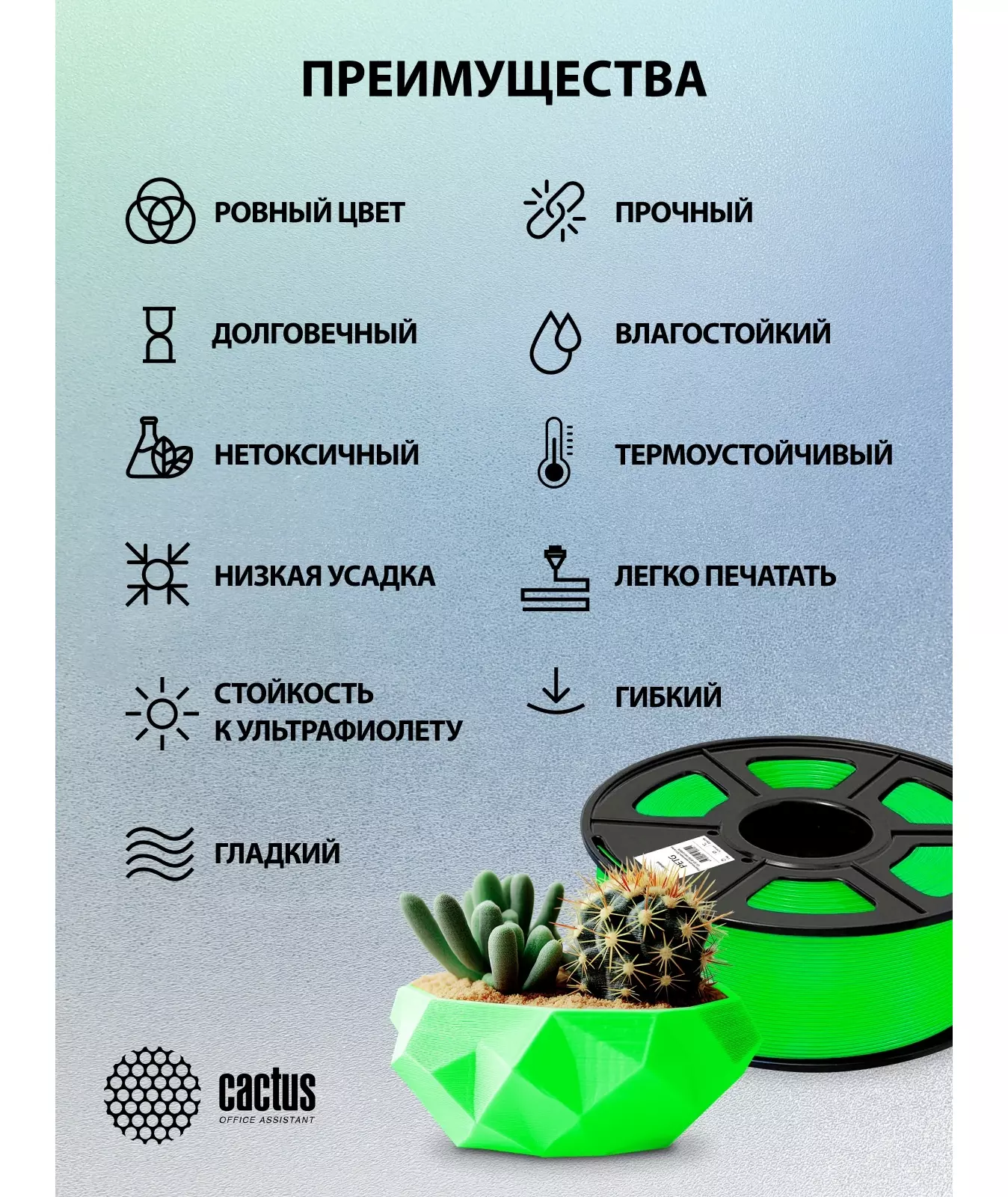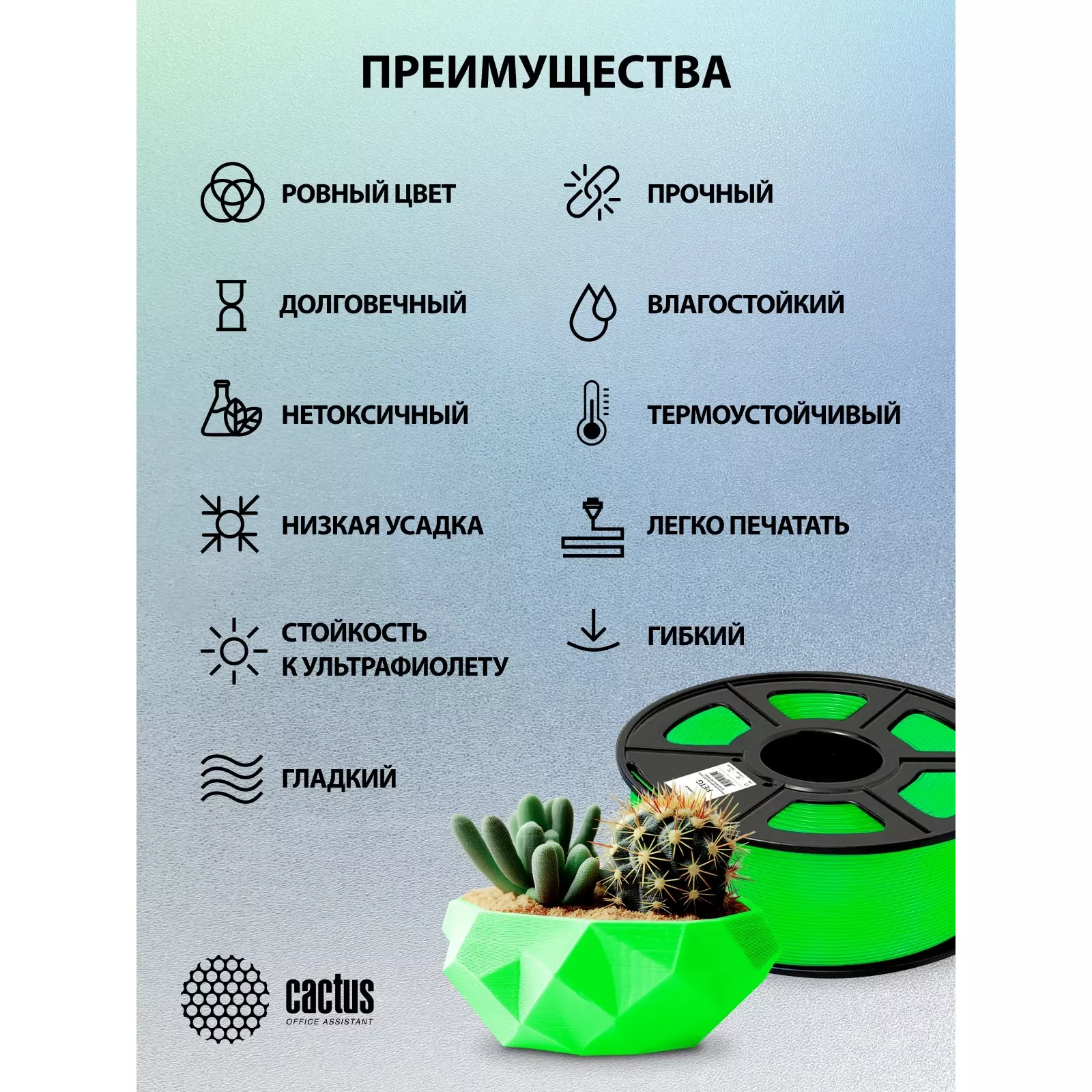 Описание Cactus CS-3D-PETG-1KG-GREEN