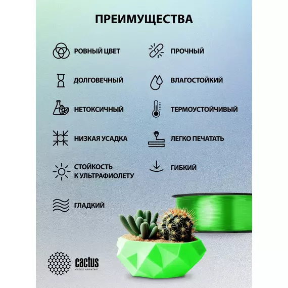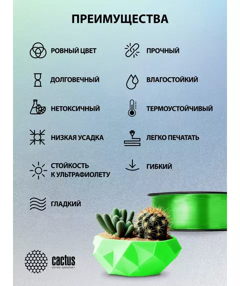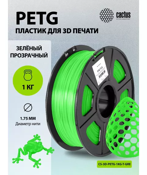 Описание Cactus CS-3D-PETG-1KG-T-GREEN