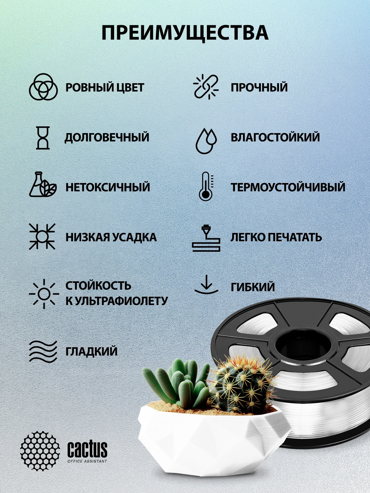 Описание Cactus CS-3D-PETG-1KG-T-WHT
