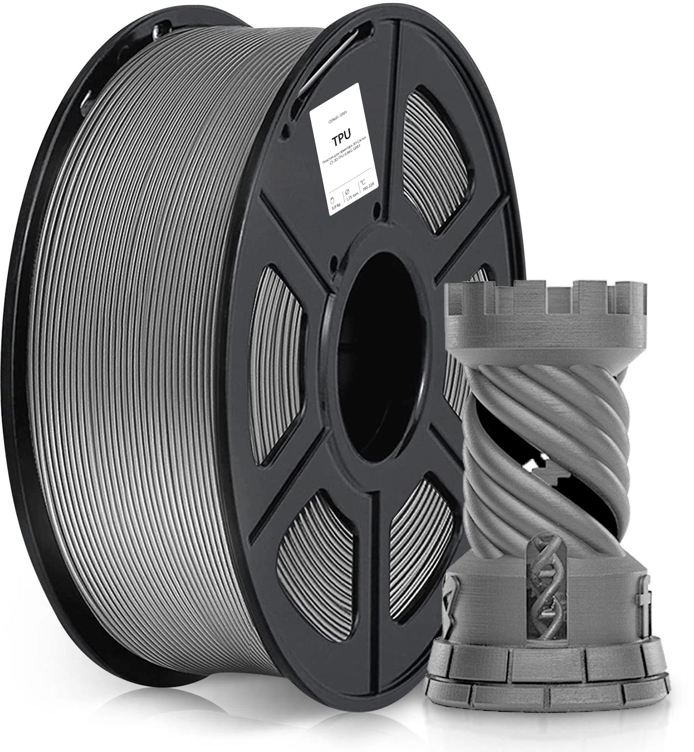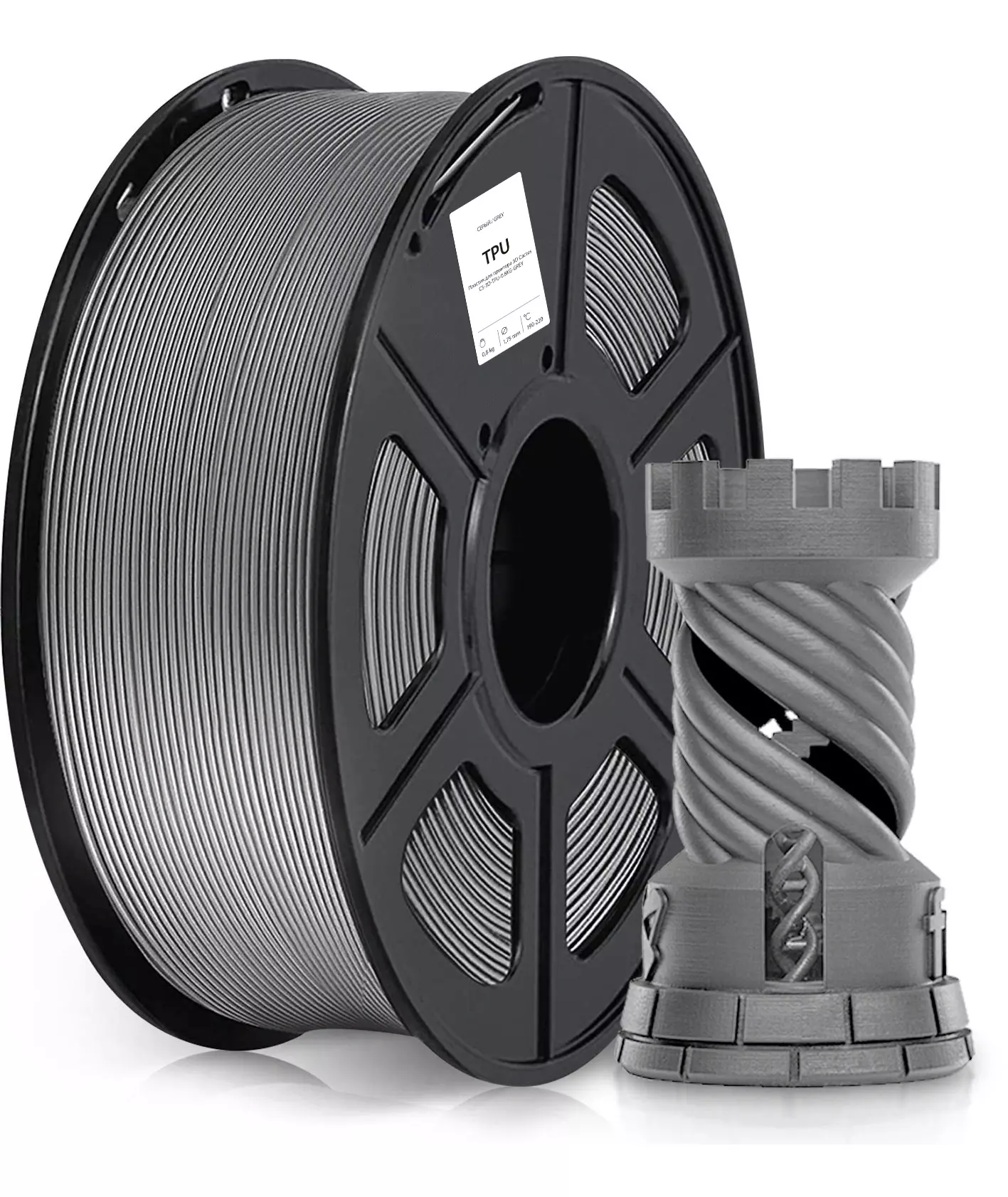 Пластик для принтера 3D Cactus CS-3D-TPU-0.8KG-GREY TPU d1.75мм 0.8кг L336м 1цв