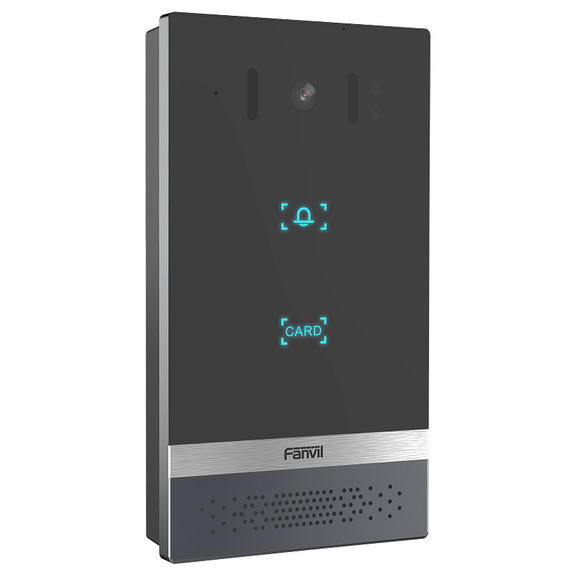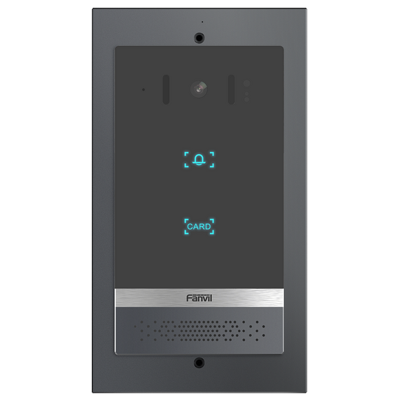 - Fanvil i16V — видеодомофон с поддержкой SIP и PoE в новом элегантном дизайне. Изготовлен из высокопрочного алюминиевого сплава и имеет неразборную конструкцию, что позволяет полностью защитить устройство от воздействия влаги и пыли (IP65) и от механических воздействий (IK10), а также имеет защитный козырек. i16 устойчив к экстремальным температурам от -40 до +70 . Устройство поддерживает технологию шумоподавления: во время звонка интерком эффективно справляется с фоновым шумом, передавая голос в HD-качестве. Дистанционный доступ к интерфейсу облегчает работу системного администратора при настройке сети. Поддержка двух SIP-линий позволяет с помощью одного домофона обеспечивать контроль доступа сразу в две организации в одном здании (или на одном этаже).