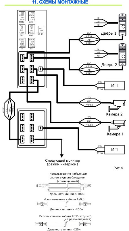 - Возможности подключения: До 2х вызывных панелей, до 2х камер, до 4х мониторов*