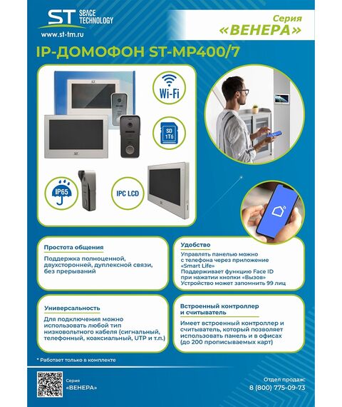 Комплект домофона ST ST-MР400/7 серия «Венера» TS/SD/WF/IPC/ 1080P/2IP/110°/IC