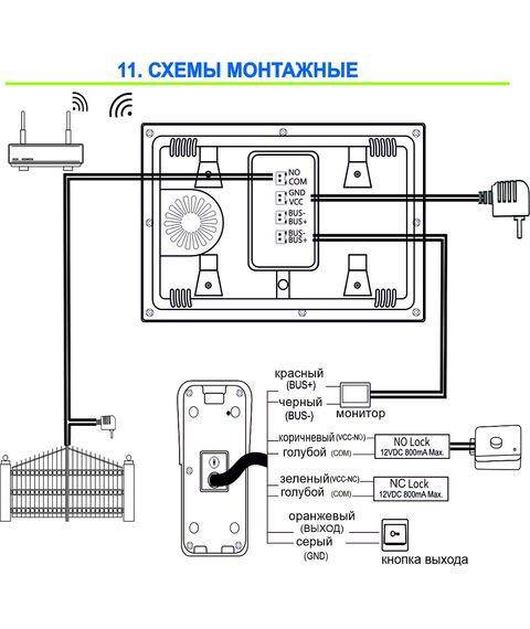 | Комплектность | Монитор видеодомофона с кабелем питания 220В, крепежным комплектом и кронштейном для установки соединительный кабель (2 контакта) - 3 шт вызывная панель видеодомофона c кабелем для подключения к монитору и замку кронштейн для поворота панели на 30° монтажная пластина IC карта - 5 шт монтажный комплект для крепления на стену паспорт и упаковочная коробка |