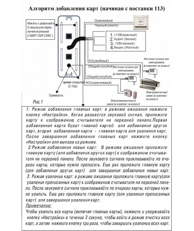 - Вызывная панель видеодомофона c кабелем для подключения к монитору и замку,козырек,кронштейн для поворота панели на 30°,монтажная пластина,IC карта-4шт.,монтажный комплект для крепления на стену,паспорт,тарная упаковка