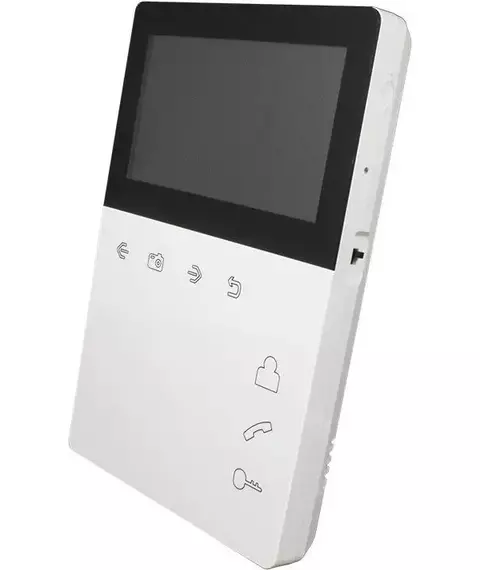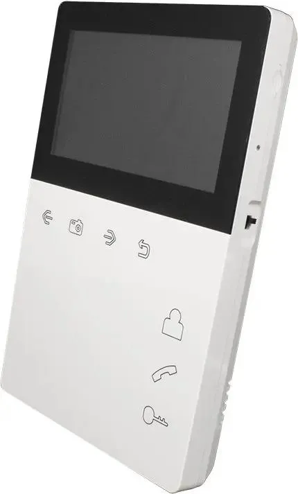 | Особенности | Монитор домофона с экраном 4,3 дюйма со встроенным блоком питания. Удобная в применении трубка на магните. Всё управление осуществляется сенсорными кнопками. Micro SD до 32ГБ |