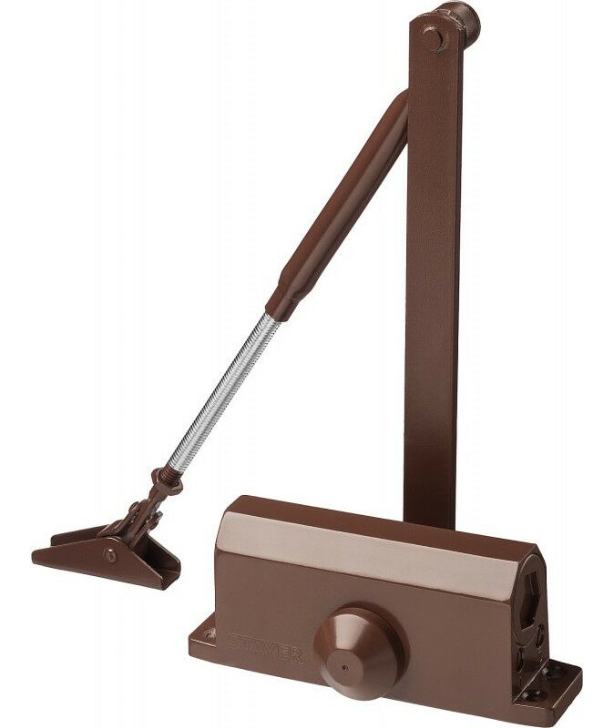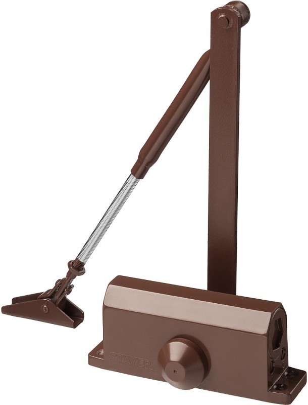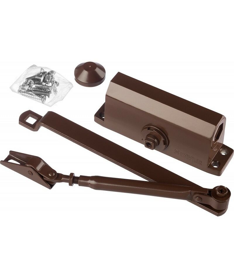 Доводчик дверной STAYER 37917-80 для дверей массой до 80 кг, цвет коричневый