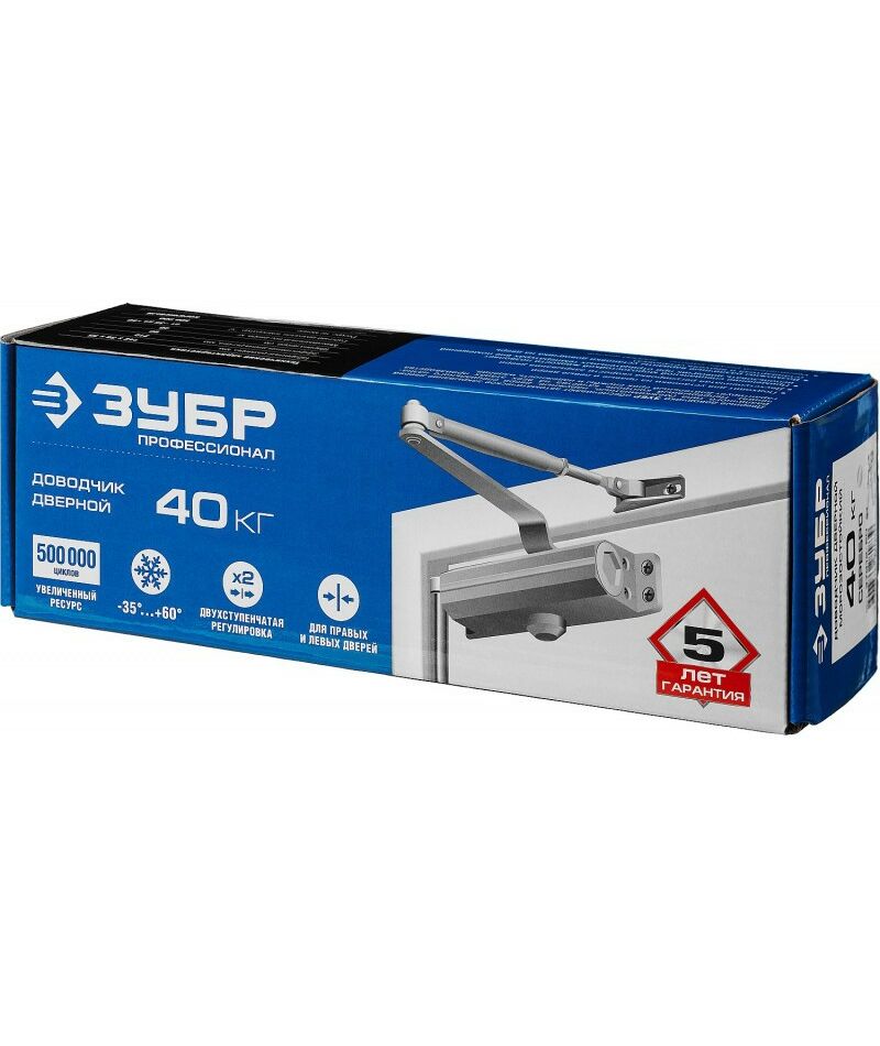 дверной доводчик Зубр 37910-50 до 40 кг, цвет серебро