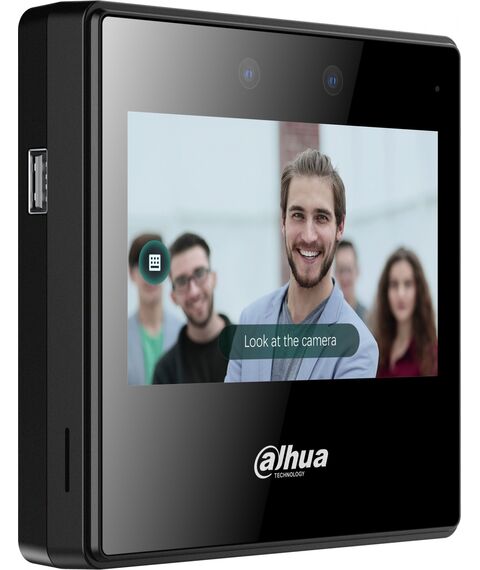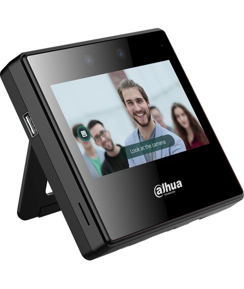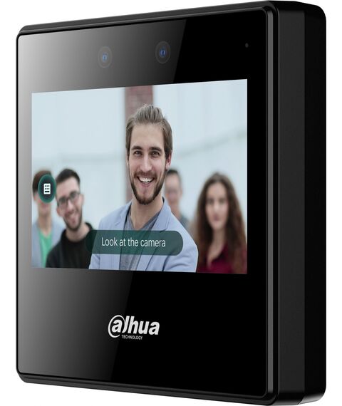 Dahua DHI-ASA3223A-W - Терминал учета рабочего времени с распознаванием лиц и контролем посещаемости c Wi-Fi. 4,3-дюймовый сенсорный ЖК-экран; разрешение 480 × 272. С 2мп двойной широкоугольной камерой и ИК. Разблокировка: лицо и пароль. Поддержка 2000 пользователей, 2000 изображений лиц, 300 000 записей и автономная работа без сети. Расстояние от камеры до лица: 0,3 м – 1,5 м. Точность проверки лица 99,9%; скорость распознавания лиц 0,2 с; определение подлога лица.