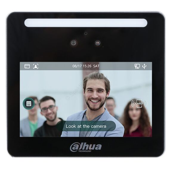Dahua DHI-ASI3214A-W - AI терминал доступа с распознаванием лиц и отпечатков пальцев с Wi-Fi. 4,3-дюймовый сенсорный ЖК-экран; разрешение 480 × 272. С 2мп двойная камера с широкоугольными объективами и ИК подсветкой. Разблокировка: лицо, отпечаток пальца, карта и пароль; разблокировать по времени. Пользовательские данные могут храниться на терминале; до 3000 изображений лиц, до 5000 отпечатков пальцев, до 5000 карт; автономная работа. Расстояние от камеры до лица: 0,3-1,5 м. Точность распознавания лица 99,9%; скорость проверки лица 0,2 с