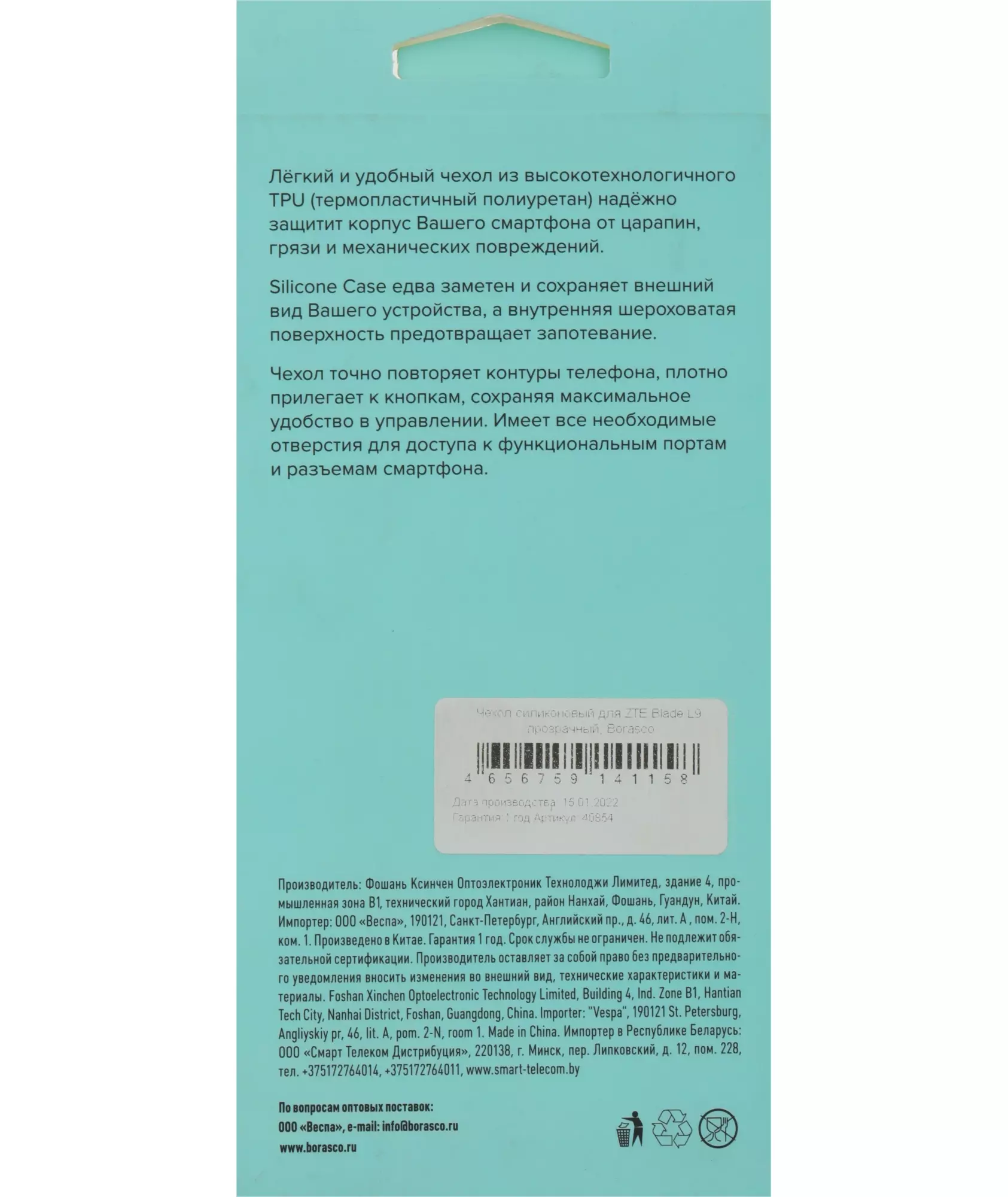 Силиконовый чехол BoraSco специально разработан для смартфонов ZTE Blade L9 в соответствии с техническими особенностями смартфона. Благодаря толщине материала не более 0,8мм чехол минимально увеличивает размеры смартфона, обеспечивая удобный доступ к управляющим элементам смартфона.