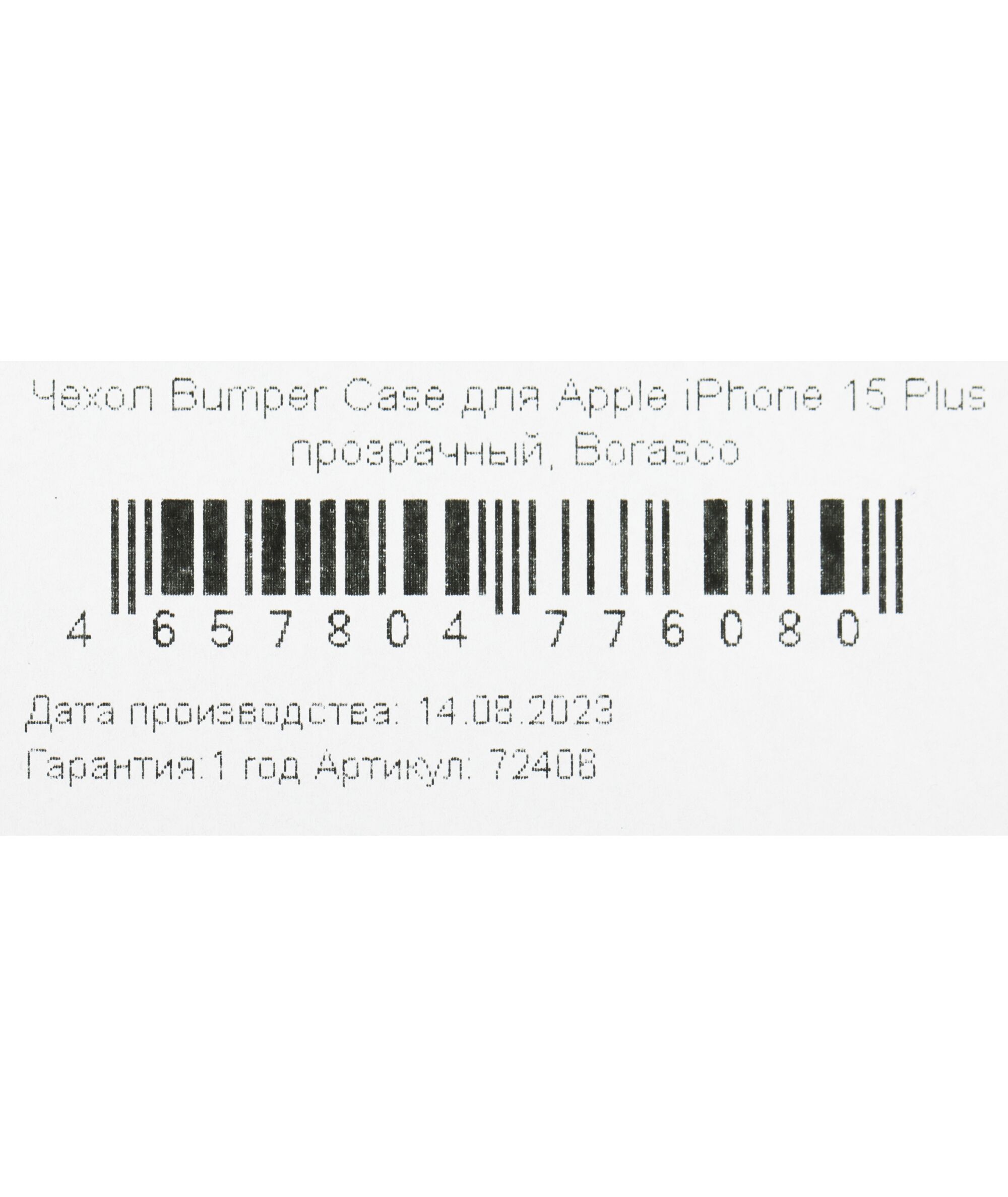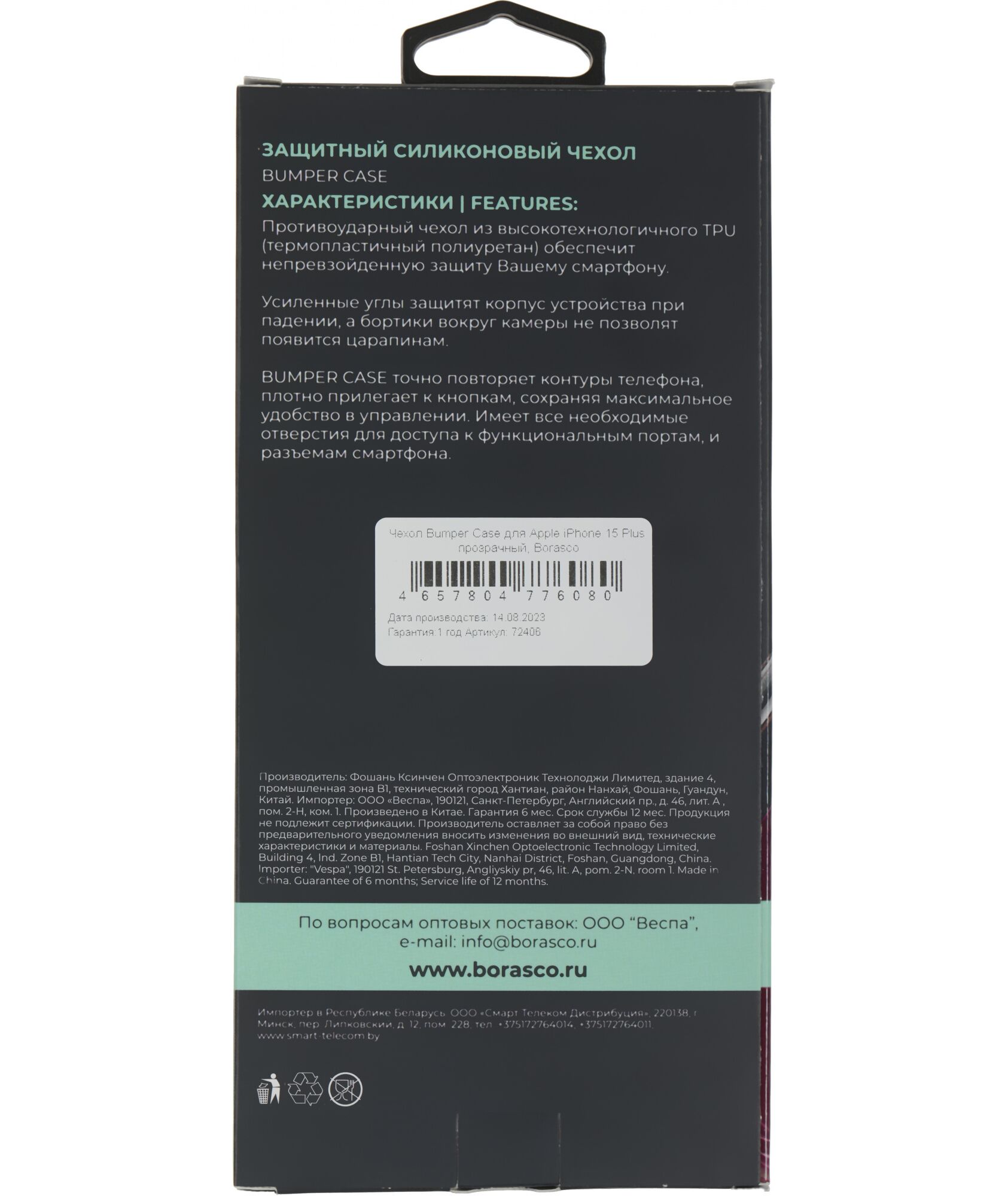 Описание Чехол (клип-кейс) BoraSCO для Apple iPhone 15 Plus Bumper Case прозрачный [72406]