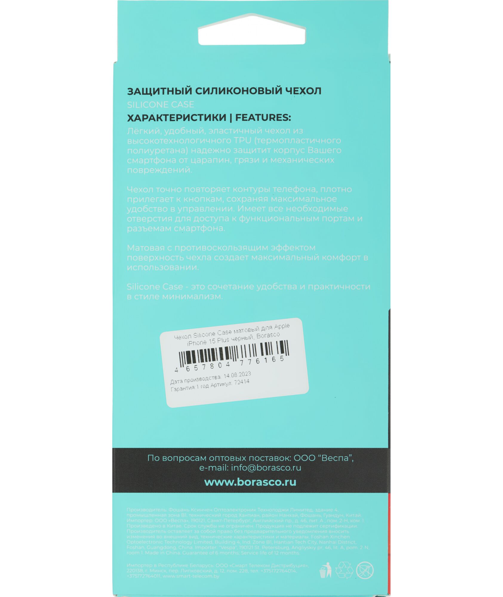 Описание Чехол (клип-кейс) BoraSCO для Apple iPhone 15 Plus Silicone Case черный [72414]