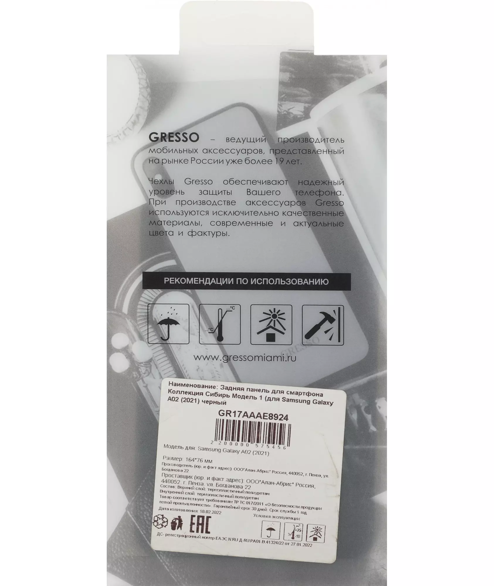 Описание Gresso для Galaxy A02 Meridian [GR17AAAE8924]