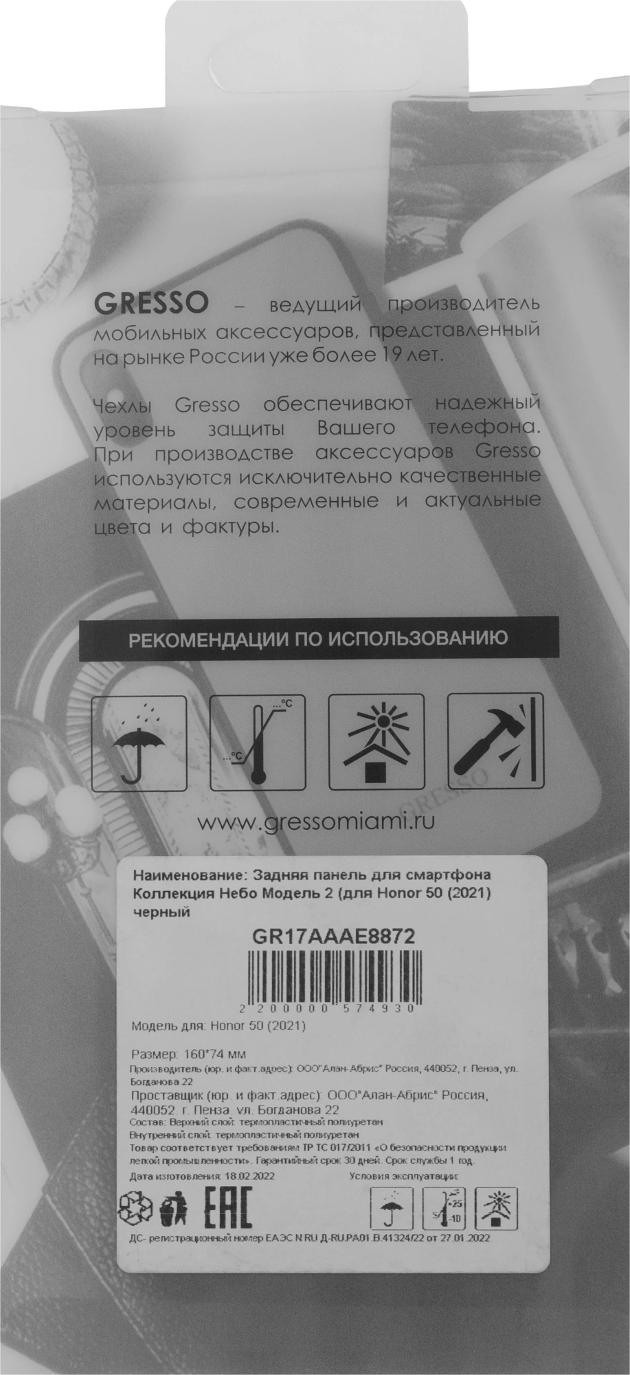 Описание Gresso для Honor 50 Meridian [GR17AAAE8872]