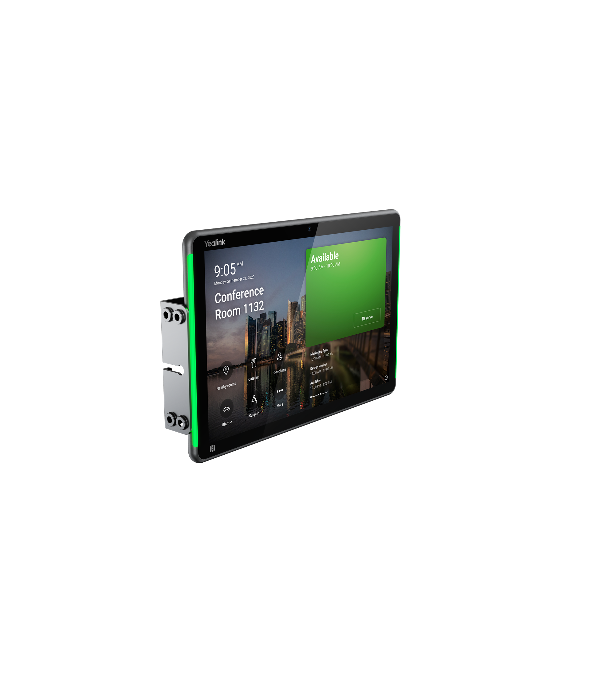 Терминал видеоконференцсвязи для бронирования конференций и переговорных комнат, устанавливается перед входом в помещение для извещения окружающих о статусе его занятости, запланированном или проходящем в нем совещании, другой полезной информации, а также предоставляет возможность забронировать эту или другую переговорную комнату. Бронирование производится удаленно из сторонних сервисов ВКС, YealinkMeeting или непосредственно со встроенного сенсорного экрана, поддерживает сторонние приложения бронирования.