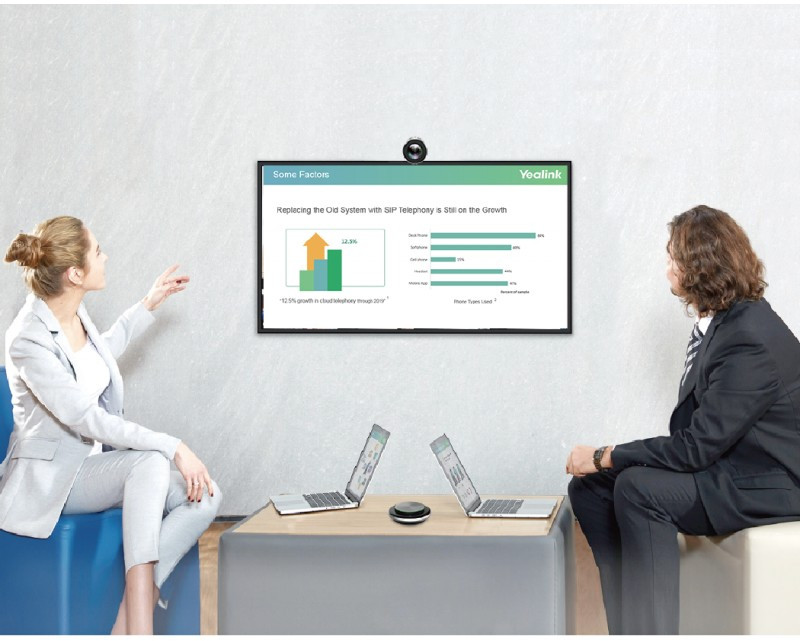 - Автокадрирование с помощью распознавания образов, автоматически размещает присутствующих в центре кадра. Технологии Yealink это делают особенно плавно и точно, а также предоставляют доступ к собираемым данным по API-интерфейсу для анализа.