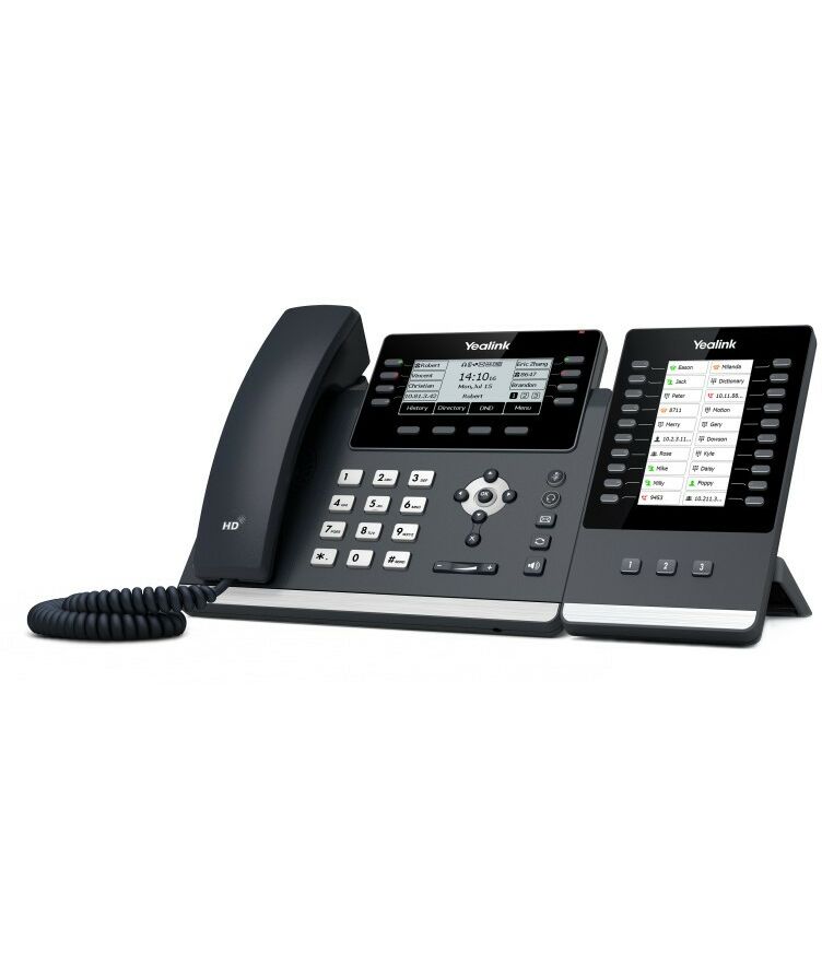 - Yealink EXP43 — модуль расширения BLF-кнопок с цветным 4,3" LCD-дисплеем. Совместим в работе с IP-телефонами Yealink серии Т4U: Yealink SIP-T43U, Yealink SIP-T46U и Yealink SIP-T48U. Значения 20 программируемых кнопок отображаются на трех страницах, таким образом в память модуля расширения можно внести до 60 дополнительных значений. Доступ к любой из трех страниц одним кликом осуществляется за счет кнопок навигации в нижней части корпуса устройства. Устройство подходит для руководителей и секретарей.