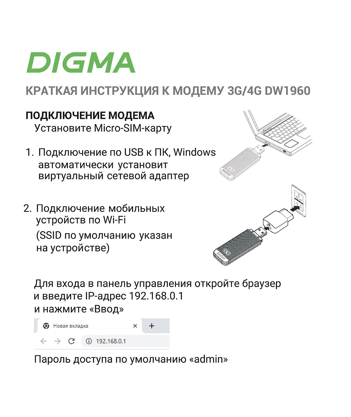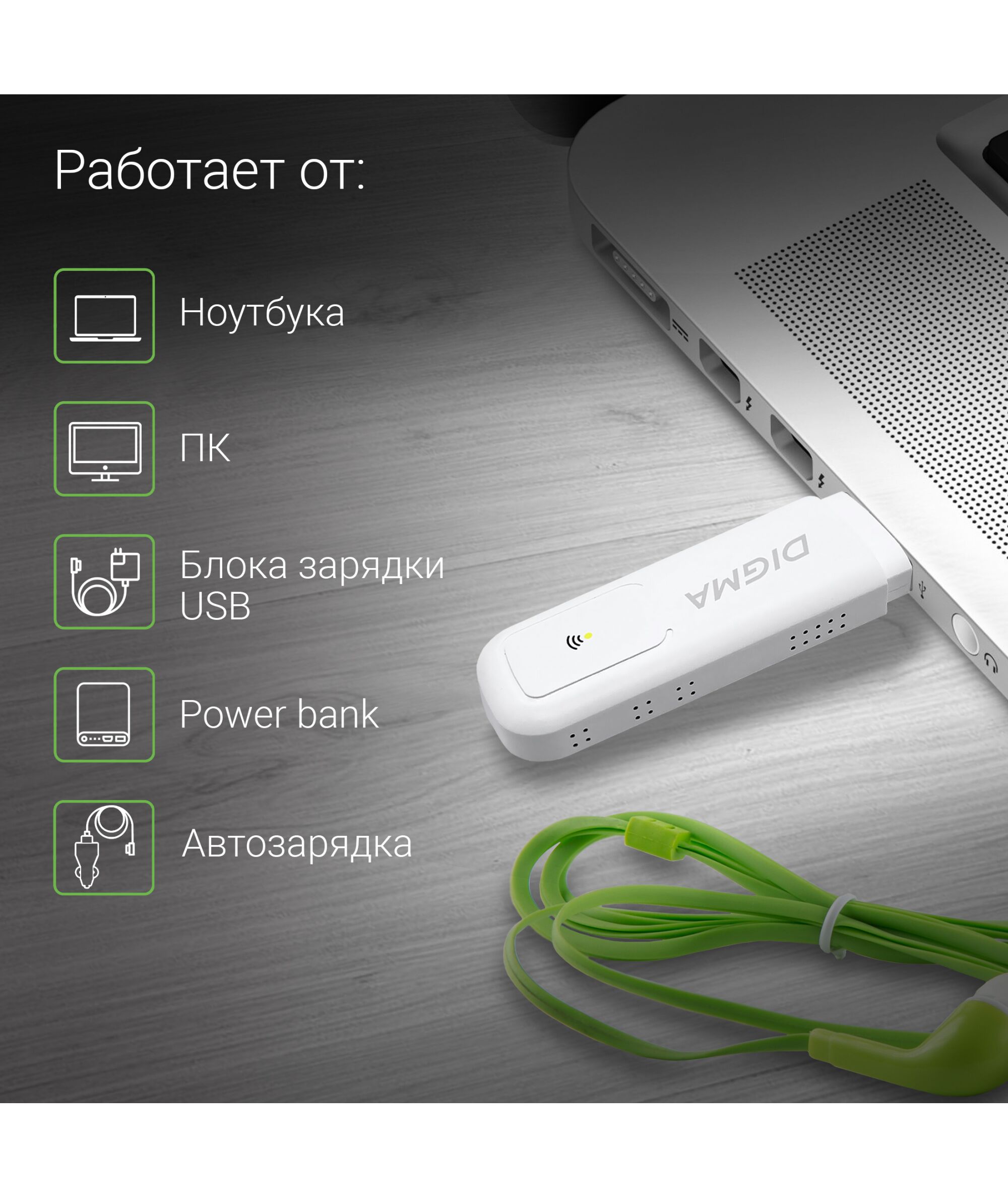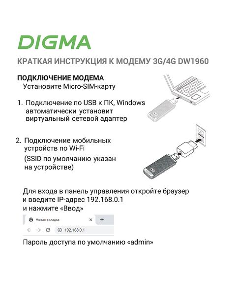 Описание Digma Dongle Wi-Fi DW1960 [DW1960WH]