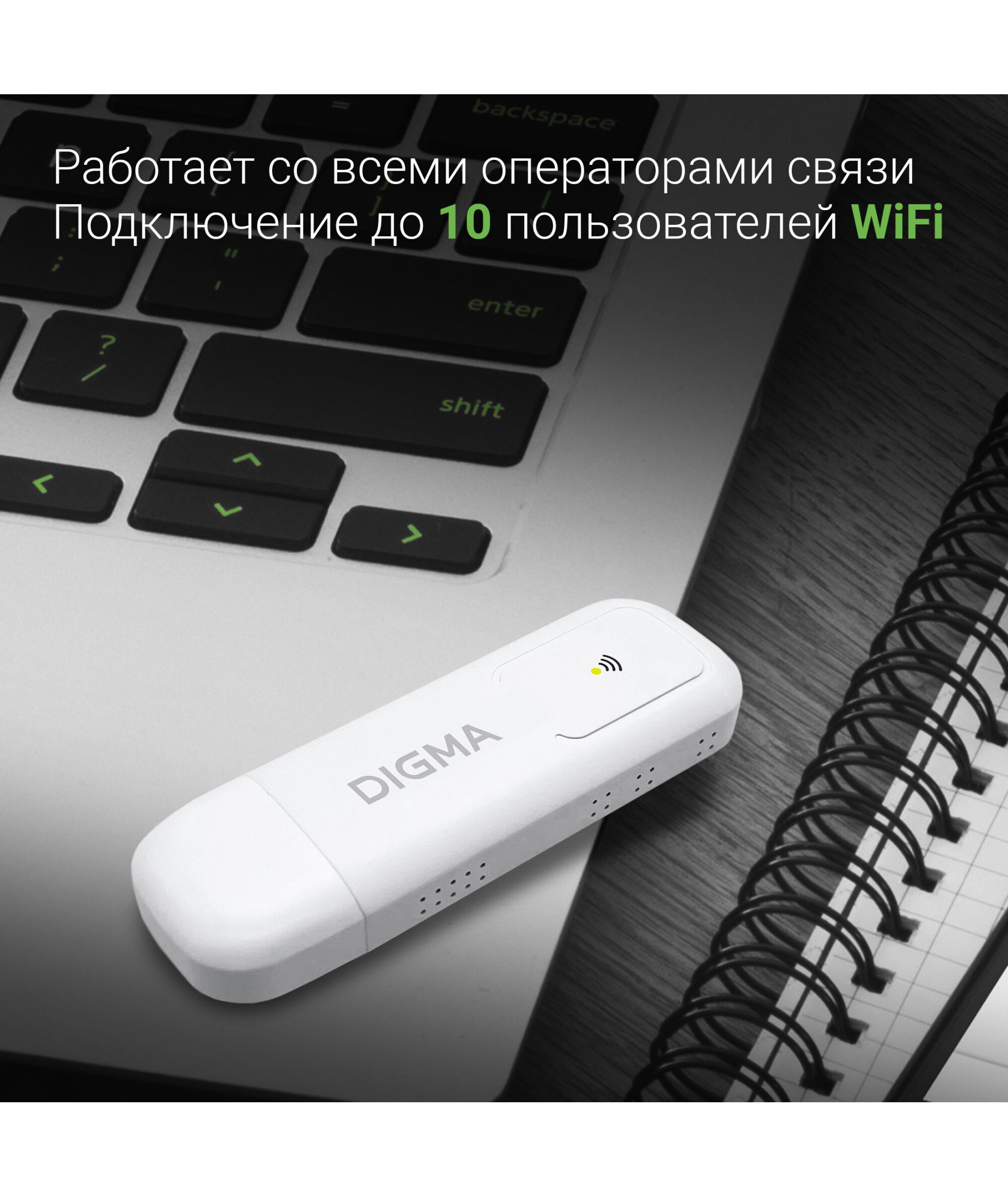 USB Wi-Fi-роутер со встроенным модемом 3G/4G. Работает с SIM-картами любых операторов сотовой связи. Подключение до 10 пользователей