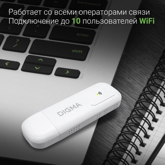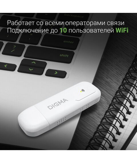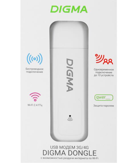 Модем Digma Dongle Wi-Fi DW1960 3G/4G USB Wi-Fi Firewall +Router внешний белый [DW1960WH]
