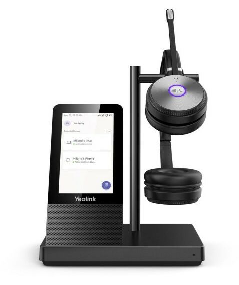 - DECT-гарнитура премиум-уровня Yealink WH66 Dual Teams, специально разработана для работы в среде Microsoft Teams, имеет специальную кнопку Microsoft Teams, оснащенная двумя динамиками, совместима с телефонами Yealink и основными UC-платформами. Технологии Super Wideband и Acoustic Shield подавляют сторонний шум и обеспечивают отличное качество звука во время телефонного разговора или видеоконференции. Индикатор занятости с красно-зеленой подсветкой отображает текущий статус разговора.