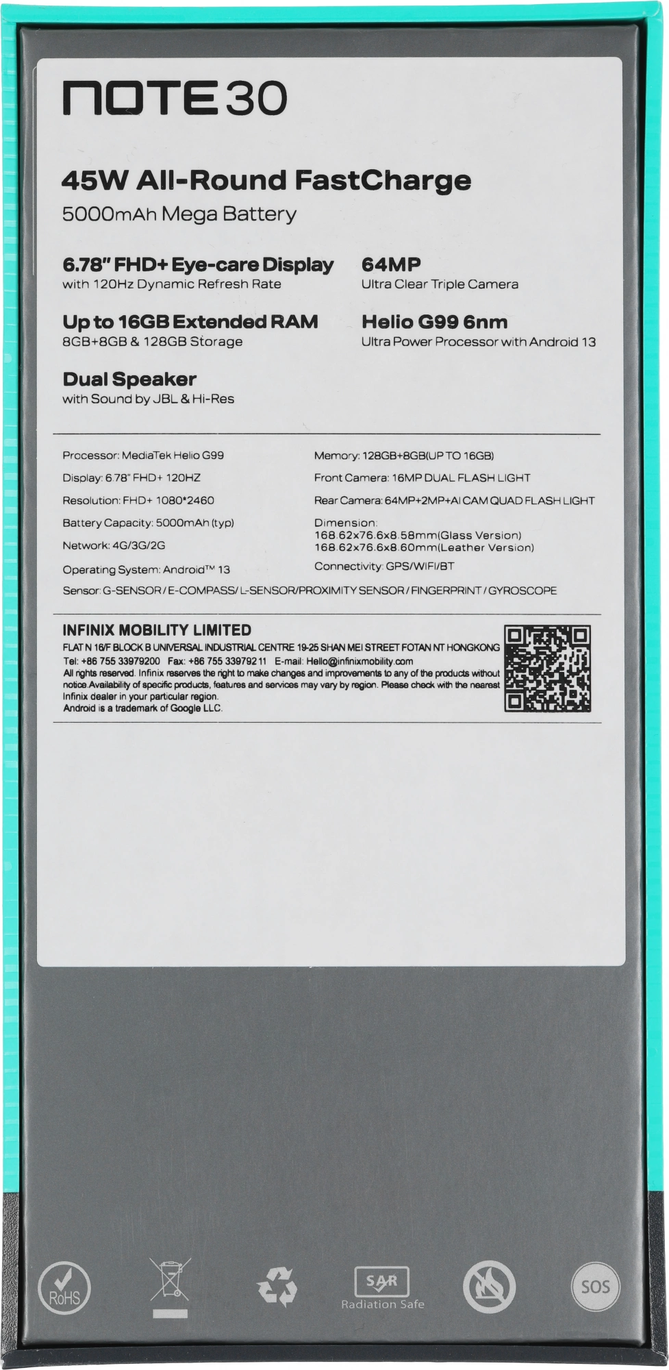 Смартфон Infinix X6833B Note 30 128Gb 8Gb золотистый 3G 4G 2Sim 6.78" 1080x2460 Android 13 64Mpix 802.11 a/b/g/n/ac NFC GPS Protect [10044294]