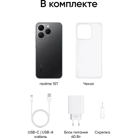 Смартфон Realme RMX5111 15T 256Gb 12Gb титан 3G 4G 6.78" 1264x2780 Android 15 50Mpix 802.11 a/b/g/n/ac/ax/be NFC GPS GSM900/1800 GSM1900 [6941764474963]