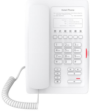 - Fanvil H3W (белый) — высококачественный гостиничный SIP-телефон с простым интерфейсом, поддержкой PoE и подключения к сети по WiFi. Модель оснащена USB-портом для зарядки мобильных телефонов и других устройств.